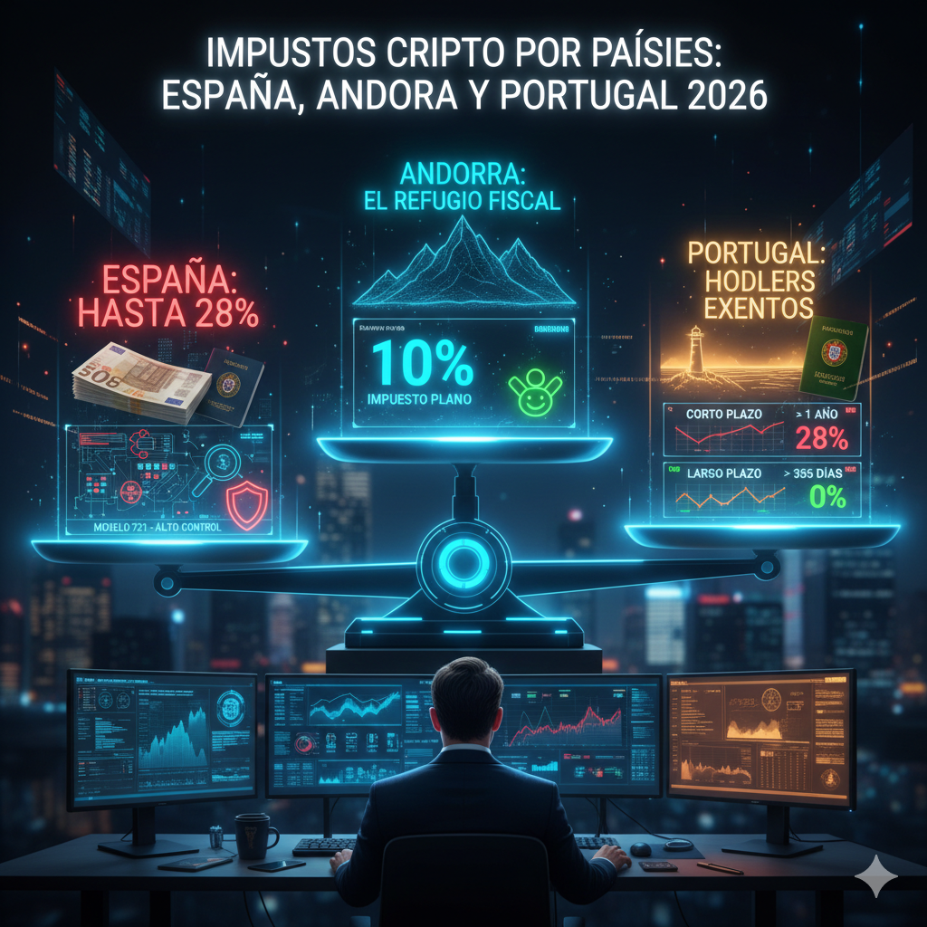 Impuestos en Cripto por Países: Comparativa 2026 (España, Andorra y Portugal)
